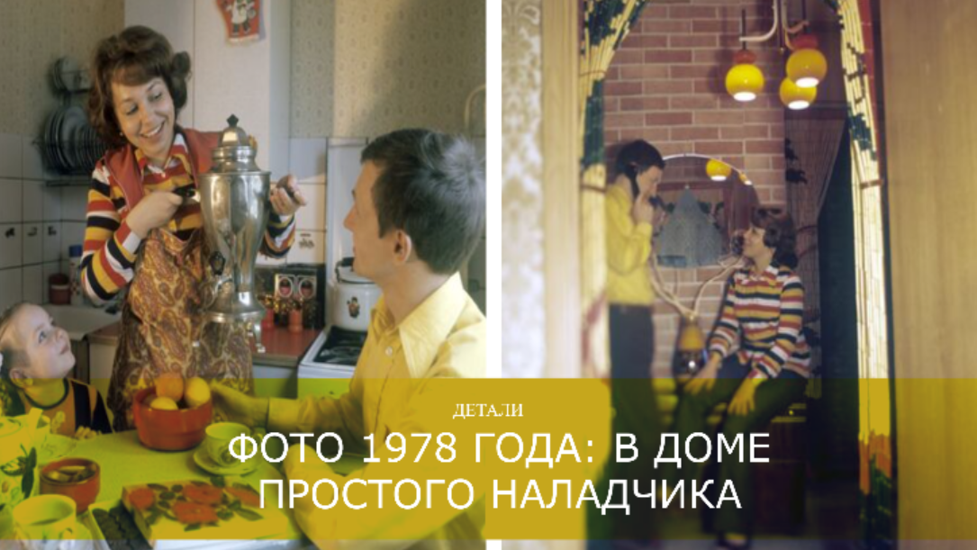 1978 год. К наладчику Московской сидценабивной фабрики Владимиру Дроздову пришел фоторепортер Андрей Соломонов. Провел в его семье целый день и снимал житье-бытье простого фабричного работяги. Акцент был сделан не на людях, а на доме - журналисту надо было показать, в каком достатке живут советские работяги, все себе позволить могут. Владимир Дроздов со своей супругой Мариной якобы даже не замечают, что их фотографирует репортер. Увлечены беседой по телефону. Не будем мешать их разговору, а посмотрим на вещи вокруг. Стильные "кирпичные" обои (хотя не уверена, что разумно