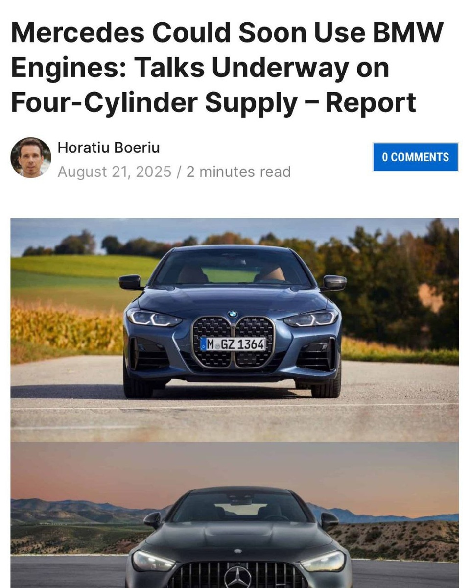 ⚡️Mercedes планирует устанавливать двигатели BMW в свои автомобили — такие переговоры ведутся уже год, сообщают инсайдеры