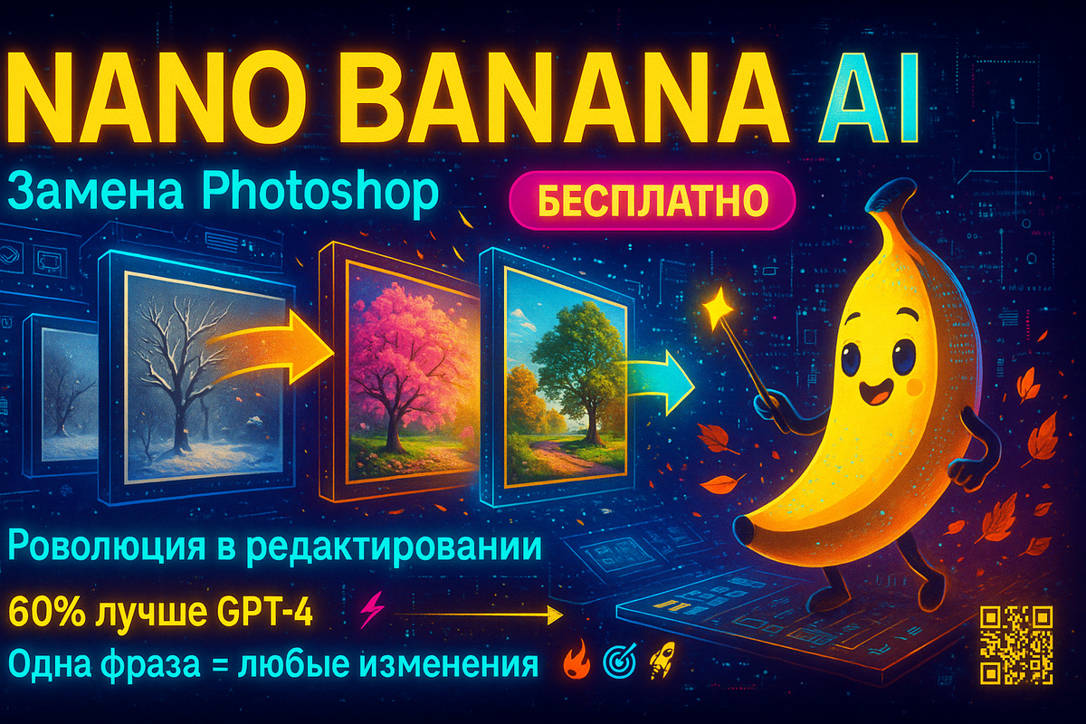 Nano Banana — экспериментальный AI-редактор изображений нового поколения, работающий на принципах deep learning. Ты просто описываешь словами желаемые изменения, а нейронная сеть анализирует изображение на уровне пикселей и вносит правки с хирургической точностью.