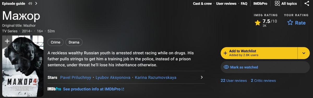 В последнее время российские сериалы начали всё чаще появляться на зарубежных экранах. В чем же дело? Российский кинематограф продвигается вперед, или может, продюсеры развивают мировой рынок? Сегодня узнаем какие картины адаптируют за границей и попробуем разобраться почему. Начнем с «Мажора». Оригинальный сериал транслировался в 40 странах, притом его рейтинг на международном сайте-агрегаторе достиг 7,5 балла. 8 лет назад компания "Sreda" продала права на адаптацию Польше, но сериал так и не появился. Да, были съемки, но до экранов сериал по сей день не дошел. Зато в 2024 году в Южной Корее выпустили 1 сезон сериала «Чеболь против детектива», основанный на нашем «Мажоре». Картина стала настолько популярной, что к съемкам 2 сезона начали готовиться еще до завершения первого. Российские «Папины дочки» показывались за рубежом, но без особого успеха. Тем не менее, в Германии решились на адаптацию, назвав свое детище «Полный дом дочек». По сюжету психотерапевт Карстен Фогель воспитывает