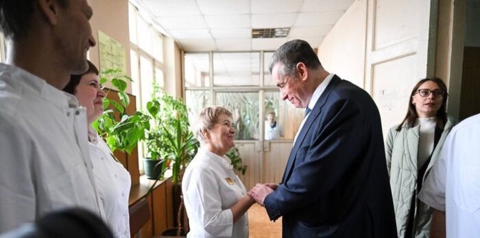 На недавней рабочей встрече с Президентом России Владимиром Путиным губернатор Владимирской области Александр Авдеев заявил о застарелой проблеме дефицита медицинских работников в регионе. Он подчеркнул, что дефицит кадров в здравоохранении во Владимирской области составляет сегодня около 30%. Сегодня Председатель ЛДПР Леонид Слуцкий предложил системный подход к решению проблемы кадрового голода в отечественной медицине. Он подчеркнул, что по всей России в поликлиниках и ФАПах некому работать, а русский человек из глубинки вынужден ехать в районную больницу, где зачастую есть лишь один врач на несколько деревень. Фото: Председатель ЛДПР Леонид Слуцкий с работниками ФАПа Позицию партийного лидера поддержал замруководителя Центрального аппарата ЛДПР по политической работе Виталий Храмушин. «За последние годы система лишилась десятков тысяч врачей и медсестёр. Молодые специалисты, получив образование за государственный счёт, не идут в поликлиники — мизерные зарплаты их не интересуют. Резу
