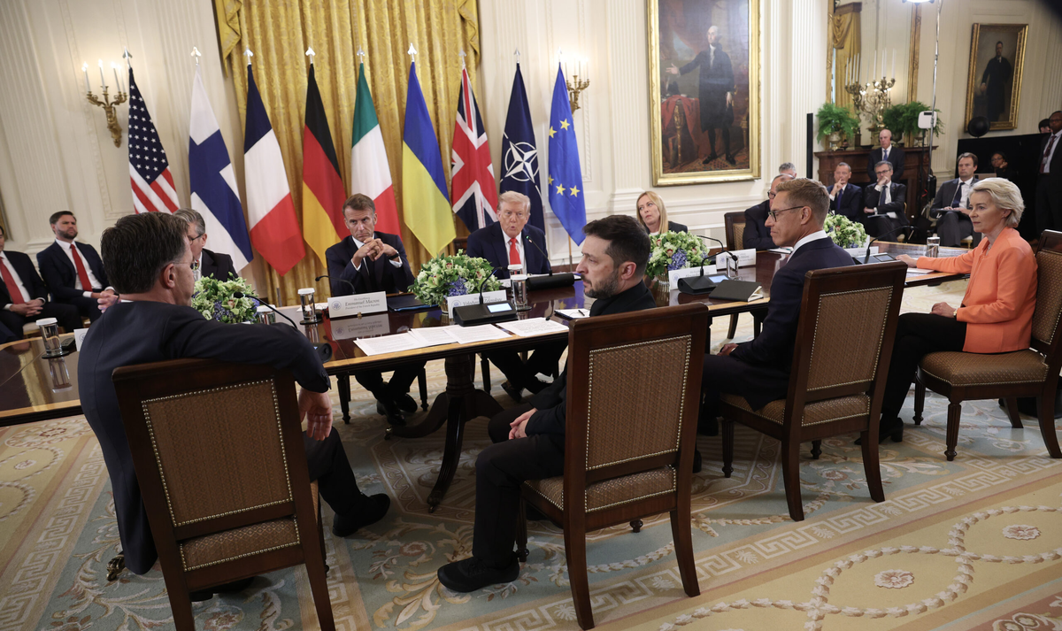 Хотя Трамп был полон решимости положить конец боевым действиям, он неожиданно принял требования союзников о том, чтобы Вашингтон гарантировал безопасность Украины. Он казался решительным в воскресенье, когда решительно заявил в программе Truth Social: «НЕТ ВСТУПЛЕНИЮ УКРАИНЫ В НАТО». Однако Трамп уже выдал свою игру. Как сообщала газета Washington Post, во время полета на борту самолета Air Force One на Аляску Трамп впервые публично заявил, что он «открыт для „возможности“ гарантий безопасности для Украины „вместе с другими европейскими и другими странами“». Позже он говорил о европейских гарантиях безопасности в «координации с» Америкой. Прежде чем приветствовать Зеленского и его европейских лидеров, Трамп ответил на вопрос о предоставлении американских войск: «Мы сообщим вам об этом, возможно, позже сегодня», добавив, что обсудит эти вопросы с прибывающими гостями Белого дома.