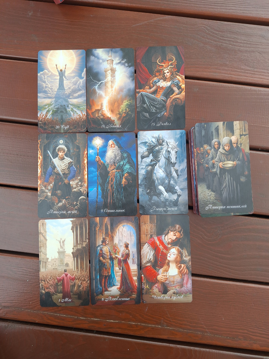 Когда твой любимый пишет: «Ты мне как Суд с Башней — встряхнула весь мой мир! 😅 Но иногда кажется, что между нами Дьявол и 5 мечей: то страсть, то спор. В моменты тишины я — отшельник, а ты вдруг рыцарь мечей, мчишься с новостями! А бывает, что включаем мага и творим чудеса вместе. Но чаще — влюблённые: не можем выбрать, что на ужин, и спорим за 4 кубка, кто моет посуду. А 5 пентаклей — это когда вместе переживаем, что в холодильнике только свет. 😂 Люблю тебя, даже когда карты не в нашу пользу! 💌»