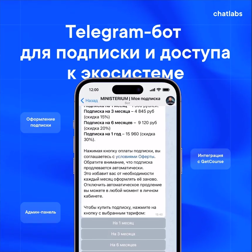 💬 Марк Бартон — Telegram-бот для подписки и доступа к экосистеме Мы разработали бота для упрощения оформления подписки на курсы Марка Бартона и подключения к единой экосистеме из Telegram-каналов и сервисов. ❓Что реализовали: 🔵 Информационные ветки Бот консультирует по продуктам, тарифам, оплате и ведёт пользователя к оформлению подписки. 🔵 Оформление подписки Выбор тарифа, ввод данных и переход к удобным способам оплаты или рассрочке. 🔵 Авторизация действующих клиентов Кнопка «Моя подписка» позволяет существующим ученикам подключиться без повторной оплаты. 🔵 Интеграция с GetCourse Автоматическая проверка подписки и доступ к личному кабинету с материалами. 🔵 Доступ к экосистеме Подключение 6 каналов, мероприятия, бесплатная поддержка, подбор психолога и клубные скидки. 🔵 Админ-панель 28 ключевых метрик в дашбордах, рассылки, управление пользователями и контентом. ✅ Результаты: ➡️ 1000+ подписчиков оформили подписку в первый месяц. ➡️ Клиент отметил качество, скорость и