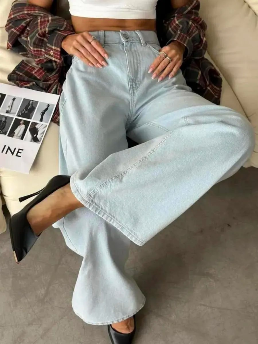 Широкие джинсы-клеш, делают образ элегантным, визуально вытягивают силуэт. Идеальный выбор для создания офисных или повседневных образов.