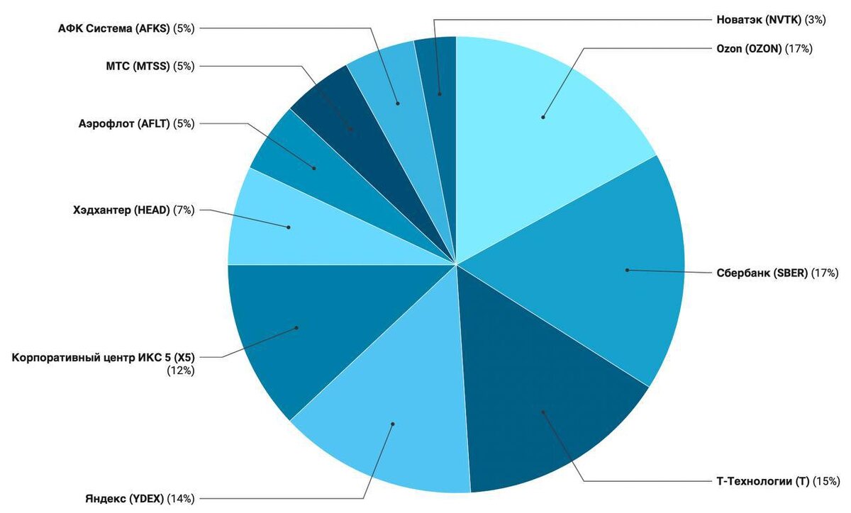 Лучшие акции российского рынка по мнению аналитиков компании по состоянию на 18 августа. Указаны целевые цены на горизонте года и доли в модельном портфеле 1️⃣ Ozon (OZON) ■ Целевая цена: 5 000 руб ■ Вес в портфеле: 17% 2️⃣ Сбербанк (SBER) ■ Целевая цена: 367 руб ■ Вес в портфеле: 17% 3️⃣ Т-Технологии (T) ■ Целевая цена: 4 157 руб ■ Вес в портфеле: 15% 4️⃣ Яндекс (YDEX) ■ Целевая цена: 5 100 руб ■ Вес в портфеле: 14% 5️⃣ КЦ ИКС 5 (X5) ■ Целевая цена: 4 000 руб ■ Вес в портфеле: 12% 6️⃣ Хэдхантер (HEAD) ■ Целевая цена: 6 000 руб ■ Вес в портфеле: 7% 7️⃣ Аэрофлот (AFLT) ■ Целевая цена: 80 руб ■ Вес в портфеле: 5% 8️⃣ МТС (MTSS) ■ Целевая цена: 280 руб ■ Вес в портфеле: 5% 9️⃣ АФК Система (AFKS) ■ Целевая цена: 21 руб ■ Вес в портфеле: 5% 🔟 Новатэк (NVTK) ■ Целевая цена: 1 400 руб ■ Вес в портфеле: 3% Не является ИИР