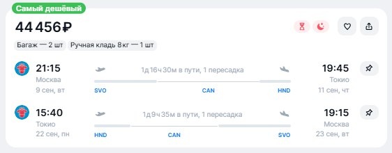 ✈️Москва - Токио (Япония), туда и обратно с багажом, пересадки в Гуанчжоу от 44450 рублей 9 сентября - 22 сентября - https://checkintime.ru/bt4n 🏖 Поиск туров | ✈️Авиабилеты