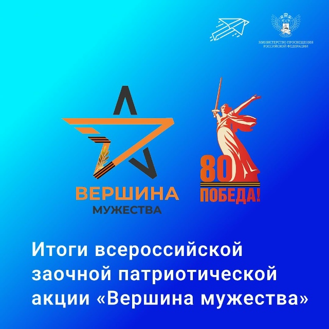 Подведены итоги Всероссийской заочной патриотической акции «Вершина мужества», приуроченной к 80-й годовщине Победы в Великой Отечественной войне 1941-1945 годов. На всероссийский этап было подано более 30 заявок в трёх номинациях: 📍«Во славу Отечества»; 📍«Герои моей семьи»; 📍«По местам военной славы». Курская область стала активным участником и показала высокий результат: 1 место в номинациях «Во славу Отечества» и «По местам военной славы» — Курский областной центр туризма; 1 место в номинации «Герои моей семьи» — Фатежская средняя общеобразовательная школа №1 Курской области; 🏆 Поздравляем победителей! Акция была организована Центром всестороннего развития детей «Прогресс» при поддержке Минпросвещения России.