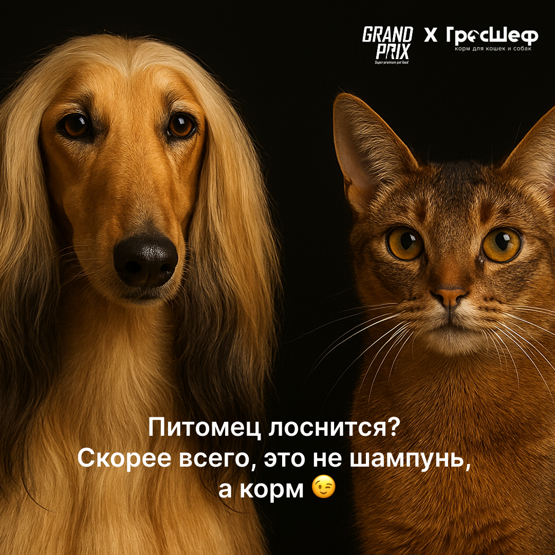 Знакомо, когда шерсть питомца теряет блеск, становится жирной у корней и сухой на кончиках, будто перья? Первая мысль — надо лучше мыть! Но часто проблема не в уходе, а в том, что внутри. 🐾 Красота шерсти — это один из показателей здоровья питомца и качества его питания. Блеск и густота шерсти напрямую зависят от: ✅ Омега-3 и Омега-6 жирных кислот (лосось, рыбий жир, льняное масло). Они отвечают за блеск и увлажнение изнутри. ✅ Высококачественных белков (мясо, птица, рыба). Шерсть на 95% состоит из белка — ему просто не из чего будет строиться на плохом корме. ✅ Витаминов группы B и витамина E — поддерживают здоровье кожи и процесс обновления волосяных луковиц. Если в рационе не хватает этих компонентов, сальные железы могут начать работать неправильно, вызывая эффект «лоснящейся», но нездоровой шерсти. Что делать? Пересмотрите рацион! Возможно, пришло время сменить корм на более качественный или ввести полезные добавки (но только после консультации с ветеринаром). Запомните: