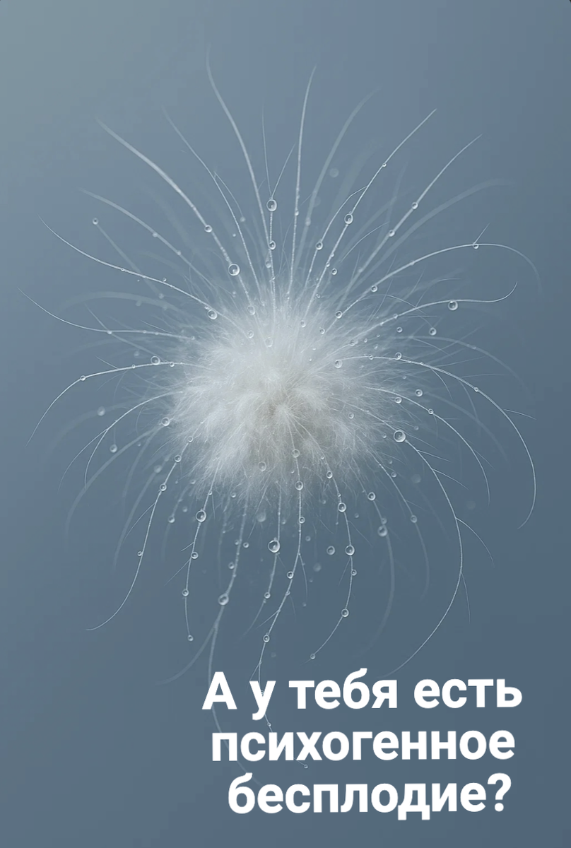 Слышала когда нибудь про психогенное бесплодие? А давай проверим есть оно у тебя или нет!? Смотри, психогенное бесплодие - это состояние, при котором психологические факторы, такие как стресс, тревога, депрессия или травматические переживания, могут препятствовать зачатию или вынашиванию беременности, несмотря на отсутствие явных медицинских причин. Оно связано с влиянием психики на репродуктивную систему через гормональные и нейрофизиологические механизмы. Если короче и проще, то это то, что ты думаешь и, как следствие, делаешь говоря о беременности. Вот как это работает: Хронический стресс и тревожность повышают уровень кортизола, который может нарушать гормональный баланс, влияя на овуляцию, менструальный цикл или имплантацию эмбриона. Хм, кажется где-то (везде) мы уже слышали про это, да? Страх перед беременностью, прошлые травмы (например, выкидыш. А может и не один), чувство вины или давление общества могут создавать подсознательные барьеры, мешающие зачатию. Хм, это тоже звучит
