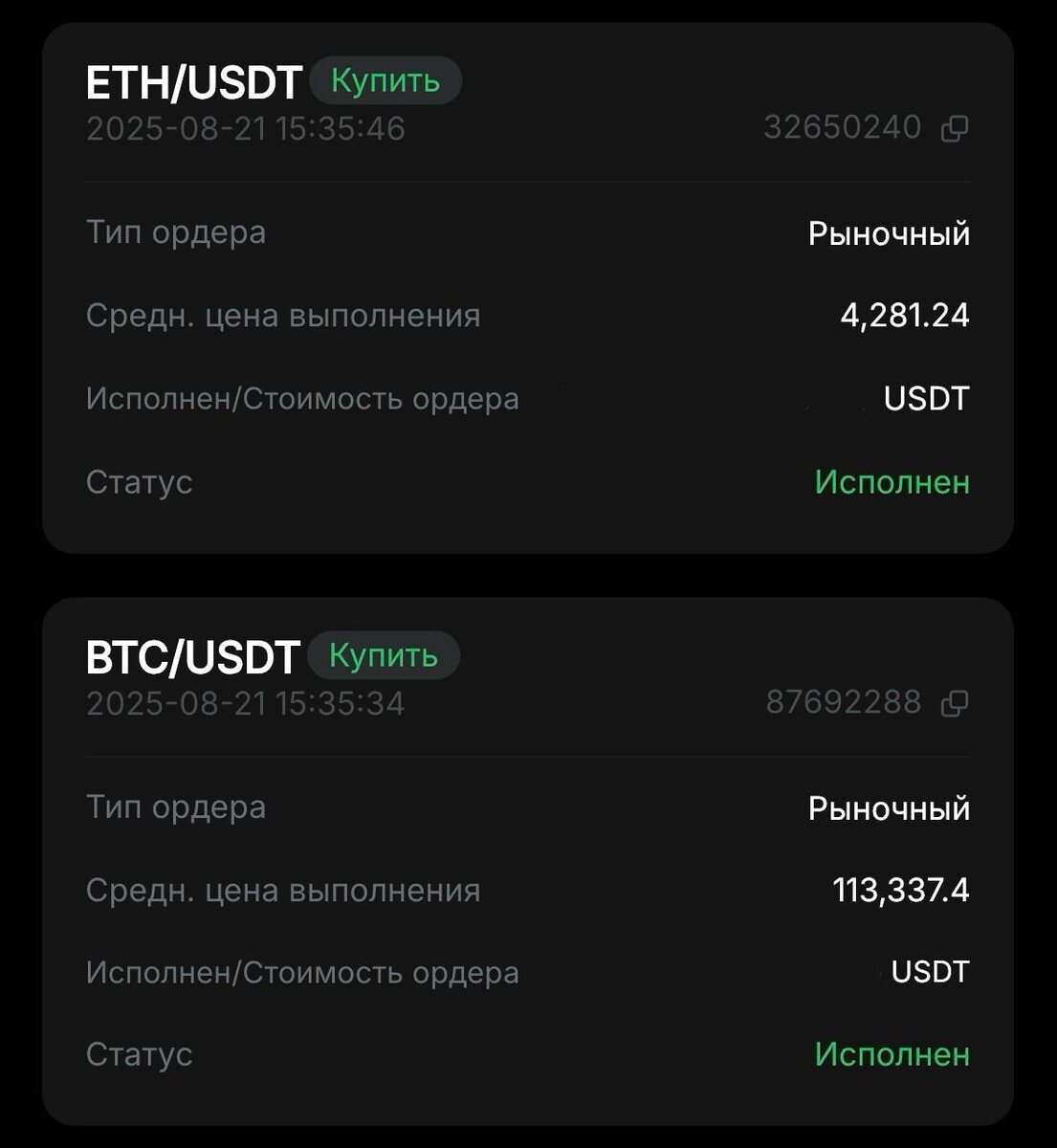 🟢 Купил BTC по 113 337 и ETH по 4 281