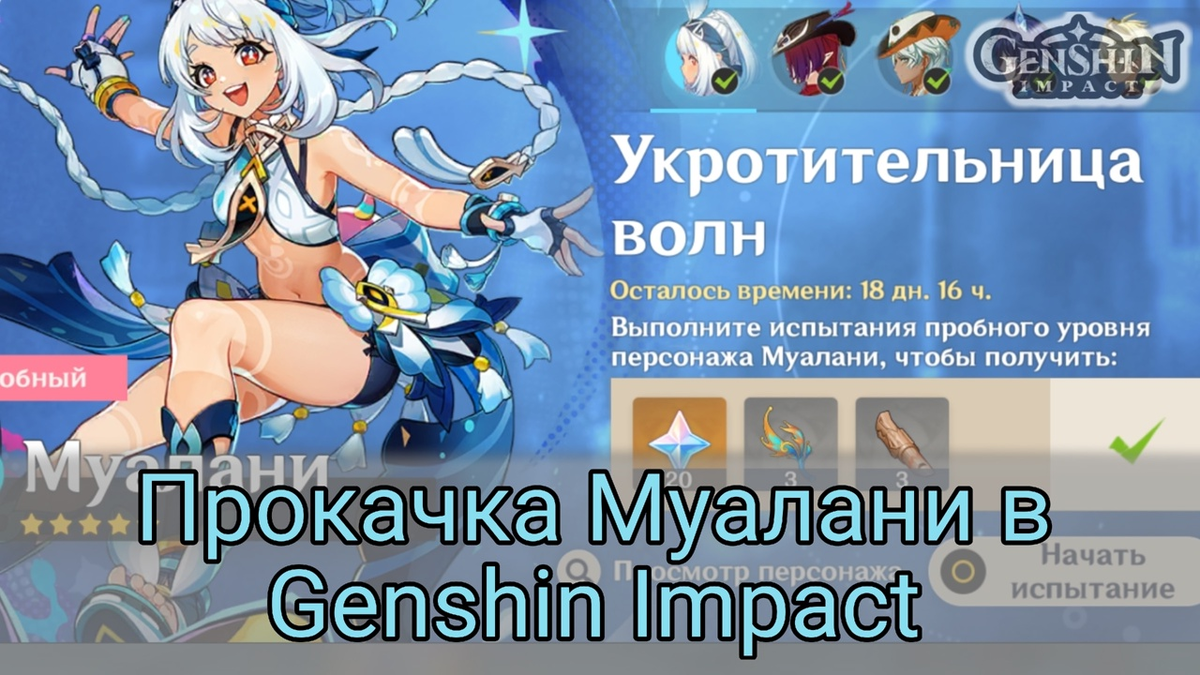Муалани — ⭐⭐⭐⭐⭐ гидро-катализатор из Натлана, вернувшаяся в реране во второй половине патча 5.8 (19 августа 2025 года). Чтобы раскрыть её потенциал как сильного саппорта и саб-ДД, важно правильно прокачать возвышение и таланты. Ниже собраны все материалы и рекомендации для оптимального развития героини. Осколок (1 штука), Фрагмент (9 штук), Кусок (9 штук), Драгоценный (6 штук) Выбивается из боссов: Гидро гипостазис, Океанид, Дракон вечных бедствий, Древний геовишап, Ужас бури, Чайльд, Аждаха, Сэки но Ками. Деревянный свисток дозорного (18 штук), Металлический свиток воина (30 штук), Золотой свисток коронованного заврианами воина (36 штук). Падают с заврианоподобных врагов из племени. (168 штуки) Диковинка Натлана. (46 штук) Награда за победу над Кукузавром-тираном золотого племени. (420 000 моры) (421 штука) Учения (6 штуки), Указания (57 штука), Философия (114 штука) Получаем после прохождения данжа «Огненные руины». Открыт в пн, чт, вск. Деревянный свисток дозорного (12 штук),