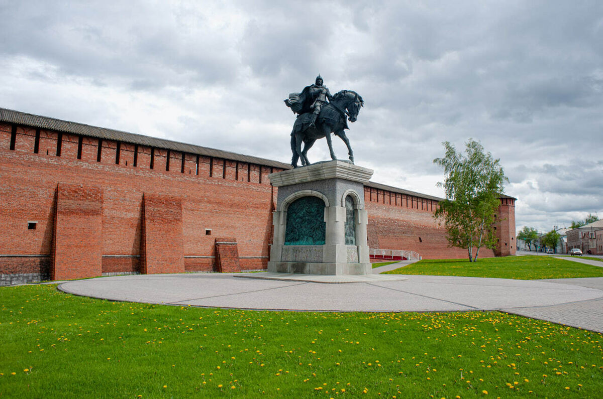 Украшением историко-архитектурного комплекса стали два бронзовых монумента. Один из них – памятник Дмитрию Донскому установлен у стен Коломенского кремля, между Маринкиной и Грановитой башнями. Авторы проекта ― скульптор Александр Рукавишников и архитектор Сергей Шаров ― изобразили Дмитрия Донского облаченным в доспехи и верхом на коне. В позе князя чувствуется несокрушимая сила и готовность действовать. Монумент появился в Коломне неслучайно ― здесь проходил сбор войск перед Куликовской битвой. Памятник прославляет победу русских воинов над монголо-татарами.