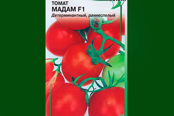 Мадам — яркий представитель категории гибридов томатов, выведенный голландскими селекционерами. Овощеводы его возделывают на грядках под открытым небом и в плёночном укрытии. Он радует их болезнестойкостью, замечательной плодовитостью растений, раннеспелостью, хорошими вкусовыми свойствами и товарным видом урожая.