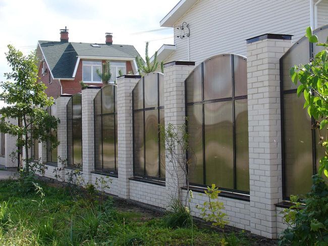Комбинированный забор с поликарбонатом. Смотрится легко, служит долго, не требует покраски и не стареет от солнца. 🔹 Поликарбонат — прочный, ударостойкий, защищён от ультрафиолета 🔹 Кирпич — фундамент надёжности 🔹 Стиль — современный, но не перегруженный Такой забор: — Пропускает свет, но скрывает от посторонних — Легко вписывается в экстерьер дома — Не теряет внешний вид спустя годы Комфорт, приватность и эстетика — всё в одной линии.