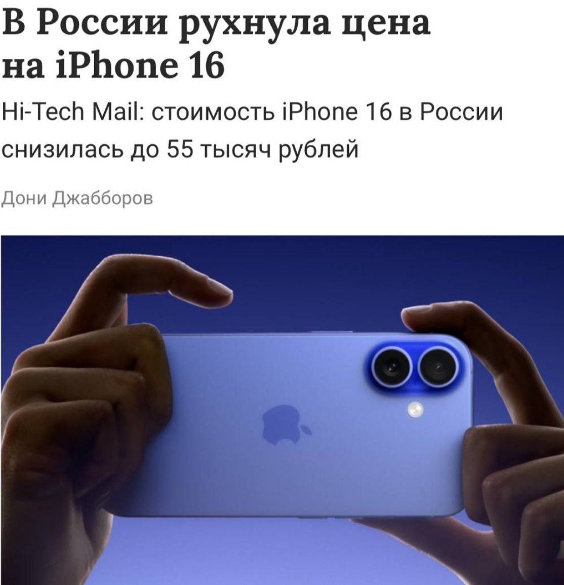 ⚡️Базовую модель iPhone 16 сейчас, перед презентацией iPhone 17, продают всего за 55 тыс. рублей. На старте продаж он стоил 114 тыс. рублей.