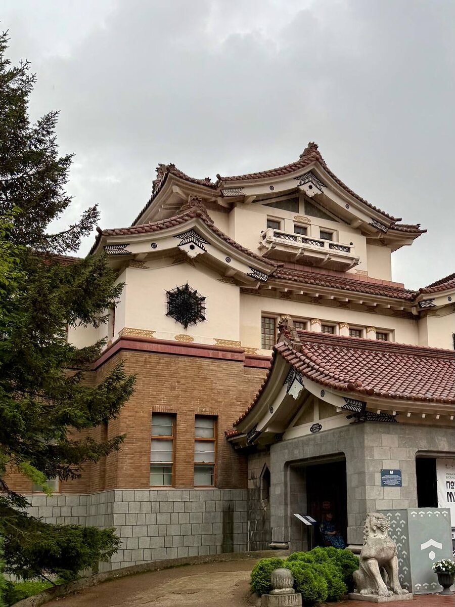 🌿 Первое приключение на Сахалине Южно-Сахалинск — город компактный: основные достопримечательности можно обойти за полдня. Но самое заметное здание — Краеведческий музей. Построенный в 1937 году японским архитектором Есиро Каизукой в стиле «императорской короны», он выглядит так, будто кусочек Японии случайно оказался на русском острове. Внутри — коллекции природы и сцены сахалинской каторги. Словом, экспозиция контрастов: от хрупких бабочек до суровых бытописаний. А вот погода подкинула своё шоу: внезапный дождь застал в саду музея и ожидать такси было решено под деревом, в этот момент охранник мирно закрыл ворота, оказывается рабочий день уже закончился🙈. Паника была вполне реальной: высокий забор, мокрый газон и машина, которая уже ждёт. Но хэппи-энд состоялся — нашёлся другой охранник и открыл «секретный» запасной выход🥳 Сегодня Южно-Сахалинск удивляет чистотой, зеленью и новыми зданиями. Город заметно меняется и готовится стать горнолыжным курортом. И кажется, у него это неп