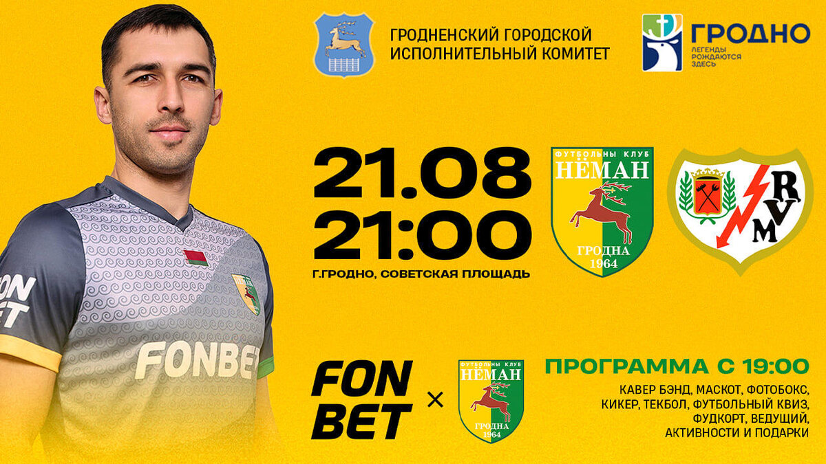 Игра пройдет в венгерском Сегеде, а мощная поддержка будет ждать команду здесь, в сердце Гродно. Прямой эфир начнется в 21:00, но настоящий праздник для болельщиков стартует в 19:00. Гостей ждет расширенная программа: футбольные активности, выступление кавер-бенда, угощения от фуд-корта и розыгрыши призов, включая ретроформу «Немана».Организация просмотра матча под открытым небом в самом центре Гродно стала возможной благодаря поддержке Гродненского горисполкома и титульного партнера ФК «Неман» – компании FONBET.Это уникальный шанс создать на главной площади города неповторимую атмосферу и оказать реальную поддержку родной команде. Пусть наши футболисты, находясь далеко от дома, услышат и почувствуют энергию тысяч гродненцев!*Партнерский материал. ООО «БИЗОН БЕТ», УНП 192977976
