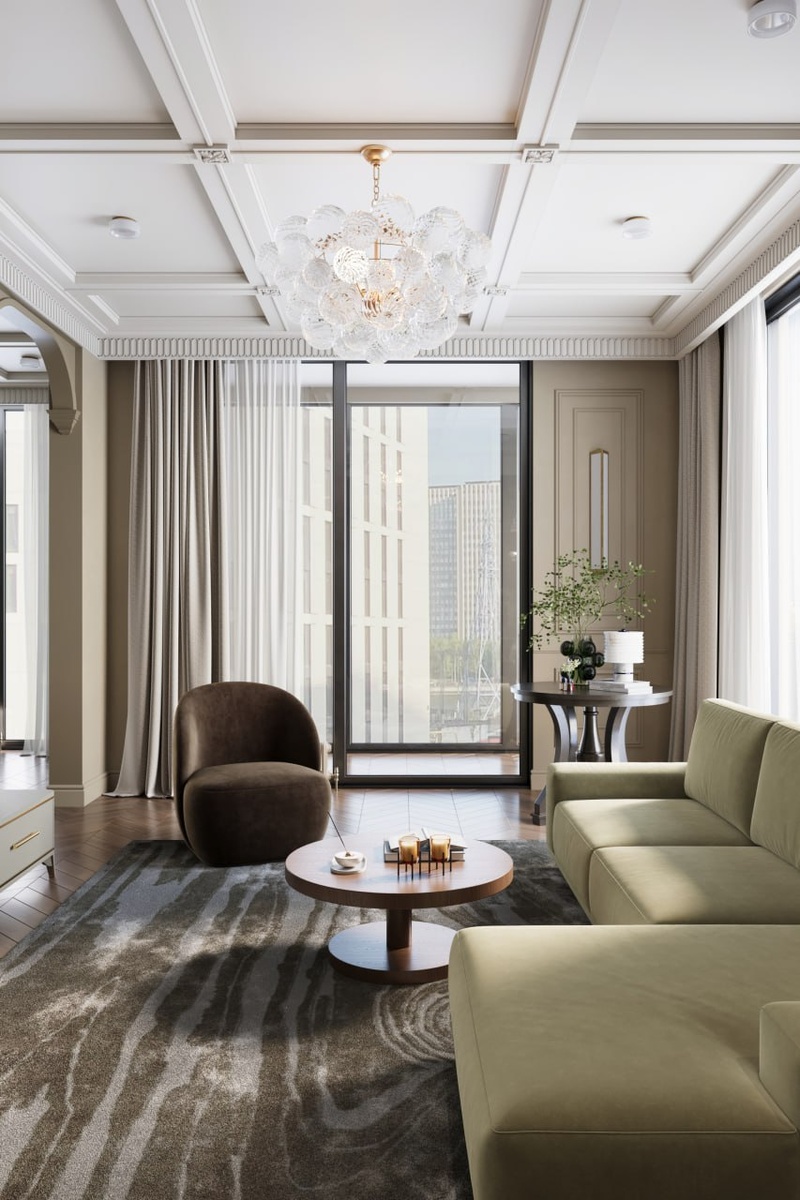 Концепция строится на создании современного интерьера с лёгким настроением загородного дома. В проекте мы использовали обилие дерева, текстиля и обволакивающих тёплых оттенков. Дизайнер Анастасия Василица насытила проект цветными акцентами, но при этом сохранила ощущение уюта за счёт приглушённых и сложных оттенков. Такое решение особенно выигрышно смотрится в интерьере современной новостройки.