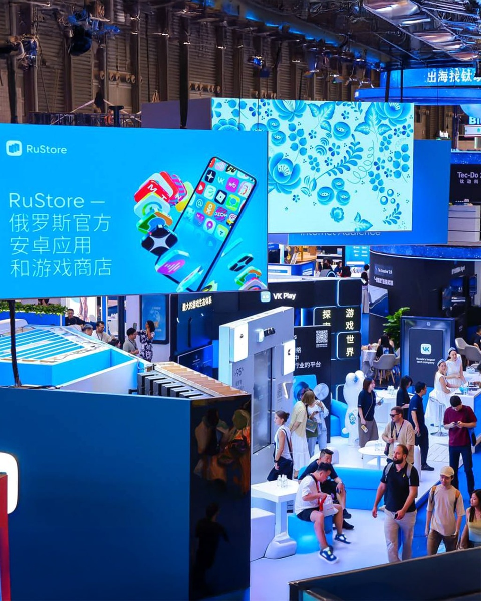 Наш контент для стенда VK в Шанхае — 4 экрана + кинетическая медиа-стена. Плотный тех-арт-челендж 😍 Задача: показать продукты VK Ads, VK Play и RuStore так, чтобы партнёры и гости выставки сразу поняли — VK не просто “ещё одна IT-компания”, а бренд с дерзостью и культурным кодом. Что сделали мы: ⚫ разработала циклические 3D-анимации для иконок, которые органично сочетались с 2D-графикой, усиливая динамику и глубину изображения. ⚫ гжель подняли на новый уровень — узоры проявляются прямо на глазах, превращая фольклор в digital-поток. ⚫ Контент для кинетической стены важно было адаптировать под ее движение и превратить механику конструкции в часть художественного замысла. Для этого мы подготовили набор геометрических элементов, которые синхронизировались с движением модулей и создавали эффект «диалога» между графикой и пространством. Сложность: “Сделайте красиво и вчера” (всё, как мы любим) ✨ Результат: Стенд выглядел как демонстрация силы бренда. Каждый экран отрабатывал свою роль,