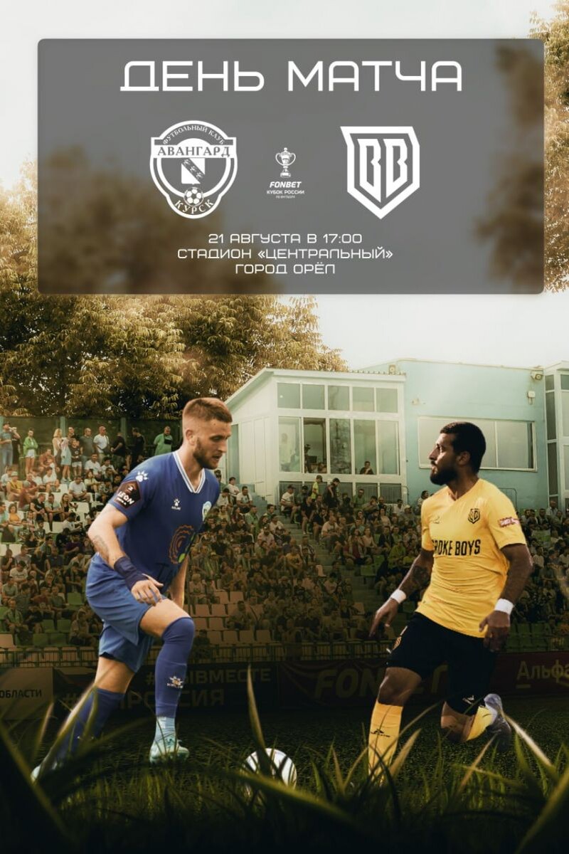 Стартовал матч в рамках Кубка России между командами “Авангард Курск” и “Broke Boys”. Стартовый состав ФК “Авангард”: Ташаев, Балашов, Бескоровайный, Игнатенко, Козырев, Мамкин, Надольский, Некрасов, Слободчиков, Сухарев, Хват. Стартовый состав ФК “Broke Boys”: Зириков, Абрамян, Давыдов, Де Карвальо, Киряков, Лобкарев, Мазуров, Мурадов, Смолов, Соснин. Обслуживает матч бригада арбитров во главе с Евгением Тимофеевым (Орел), ассистенты: Илья Акопян (Воронеж) и Кирилл Бронзов (Тула), резервный: Андрей Стрелков (Курск), инспектор: Александр Кабаков (Москва). Ссылка на трансляцию 6+