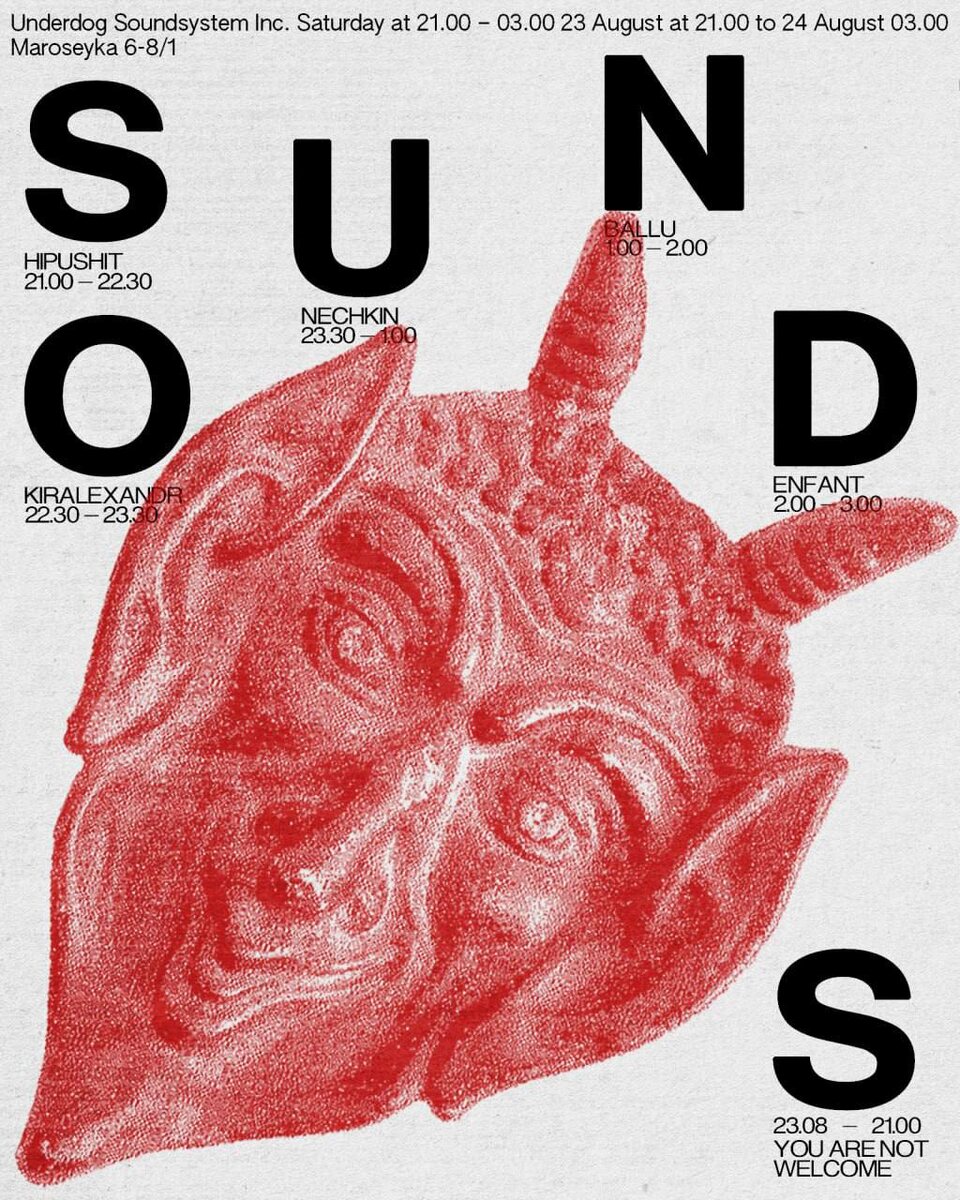 UNDERDOG SOUNDSYSTEM Теплая погода постепенно покидает нас, поэтому в субботу Underdog планируют провести одну из последних больших вечеринок во дворике. В гости пригласили: Hipushit Kiralexandr Nechkin Ballu Enfant *В случае дождя во дворе будут стоять шатры. 📆 23 августа, в 21:00 📍 Underdog, Москва, ул. Маросейка, 6-8с1