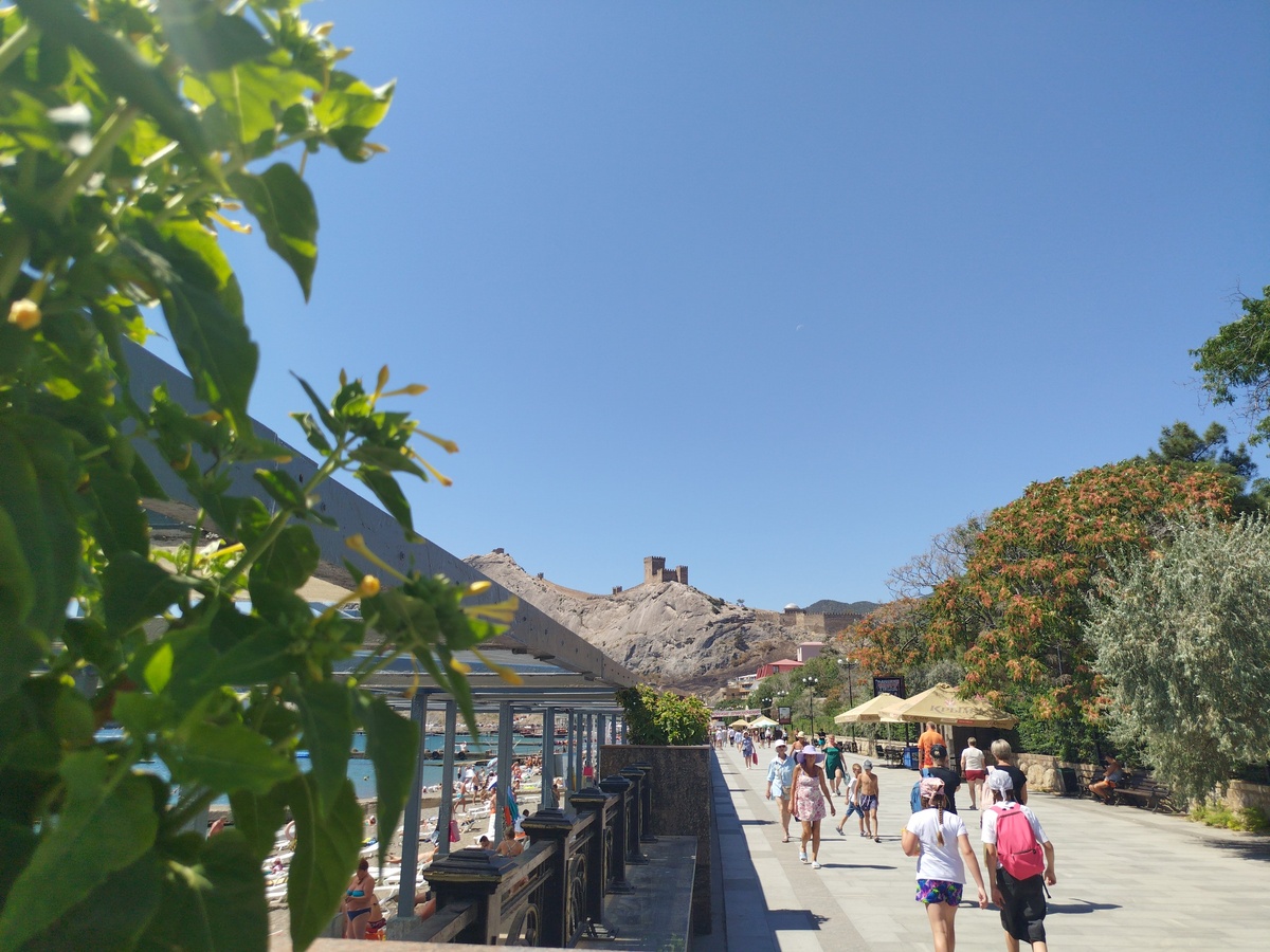 Когда я впервые оказался в Судаке, первым делом направился к набережной. Не знаю, что именно меня туда потянуло — может, запах моря, может, мечта о тишине и свободе. Но как только я ступил на променад, понял: это место не просто туристическая точка, это — душа города. Набережная тянется вдоль бухты, между Крепостной горой и мысом Алчак. Я вышел к ней от Генуэзской крепости — величественной, будто сошедшей со страниц исторического романа. Кстати, позже узнал, что здесь снимали «Мастера и Маргариту». И правда, атмосфера мистическая. 🚶♂️ Я шел по аллее, мимо фонарей, клумб, скамеек — всё ухожено, чисто, приятно глазу. Люди улыбаются, дети смеются, кто-то играет на гитаре. В такие моменты чувствуешь, что жизнь — это не только работа и заботы, но и вот такие простые радости. 🌲 Кипарисовая аллея — отдельная история. Её называют «Крымским Арбатом», и не зря. Здесь кипит жизнь: кафе, бары, музыка, огни. Я зашел в «Итальянский дворик» — взял бокал вина, тарелку пасты и просто сидел, смотрел