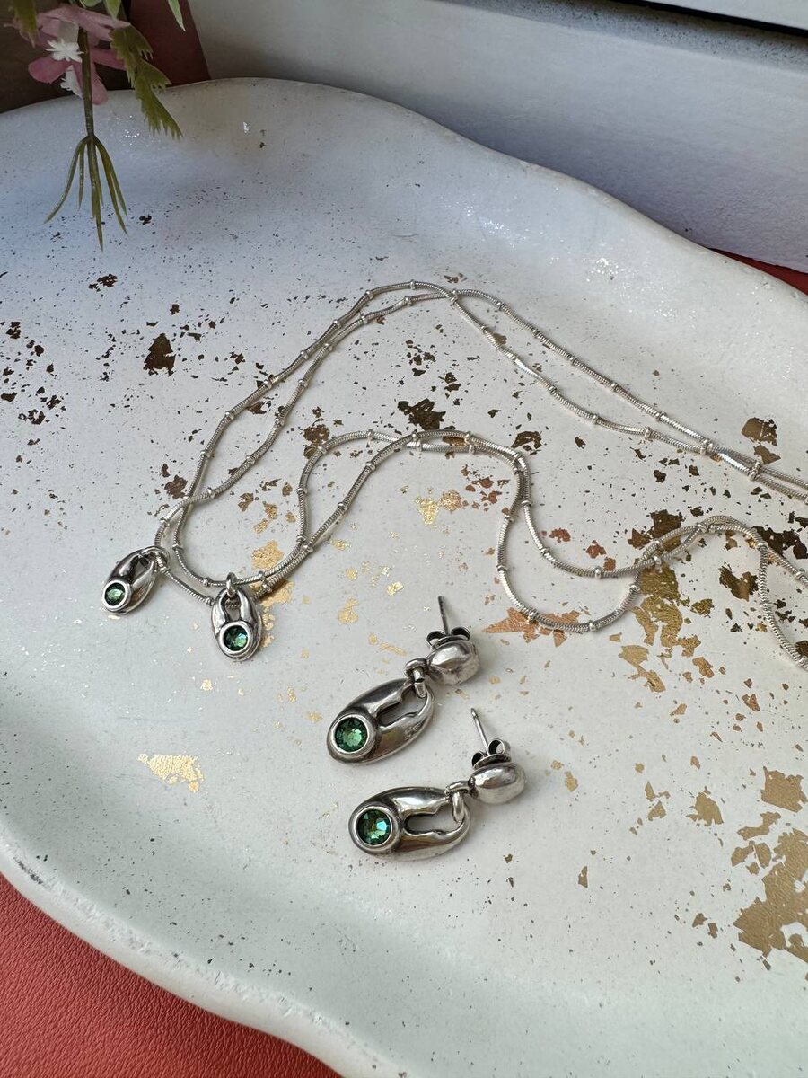 У кого зелёный - любимый цвет? 💚 Ставьте реакции! Глубокий изумрудный оттенок в обрамлении серебра добавит образу таинственного блеска