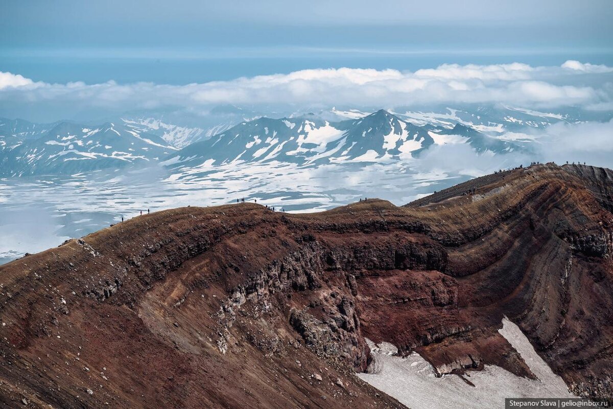 Всего в 80 км от Петропавловска-Камчатского находится действующий вулкан Горелый! Вулканический комплекс состоит из 11 конусов и 30 кратеров, некоторые из котторых заполнены озёрами с кислотной или пресной водой. Около 6000 лет назад здесь происходили взрывные извержения с резкими выбросами лавы, но с XV века извержения стали более умеренными. Последняя активность зафиксирована летом 2010 года. Подъём на вершину вулкана - один из самых популярных туристических маршрутов. Любимое место - Голубое озеро с кислотной водой в восточном кратере. Считается, что вода в озере сигнализирует о состоянии вулкана: когда он находится в покое, озеро сохраняет голубой цвет. А при скором извержении жидкость начинает менять цвет и выкипать. Фото: Слава Степанов Камчатский_край 🇷🇺 @ВокругСтраны-Travel 🚘