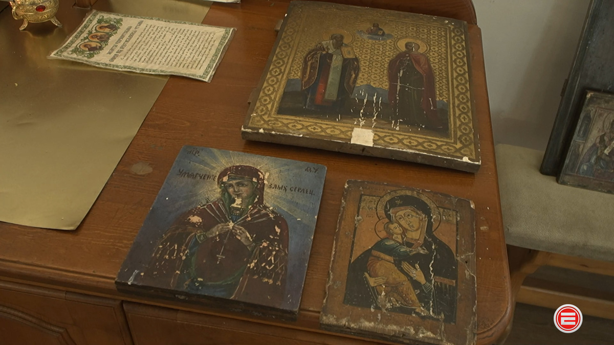 - Мы сняли старые иконы, потому что они были темные, их вообще не видно было. А висеть ради того, чтобы они просто висели, я считаю, это неправильно. Образ должен видимый быть и его нужно сохранить. Я их снял со стен, все испугались, что новый поп все снял, все продаст и новые иконы принесет и все. Но я всем объяснил, что никакой продажи не будет. Просто я хочу дать им новую жизнь, сохранить, чтобы они перешли нашим потомкам, - сказал настоятель Храма во имя Святой Троицы иеромонах Тихон (Щербаков.)
