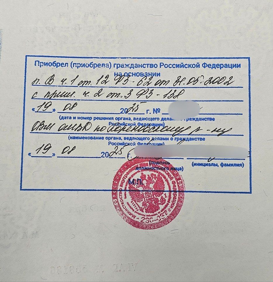 Получил Дима эту заветную печать. Живя при этом уже почти 6 лет в России и имея Загранпаспорт РФ.😁