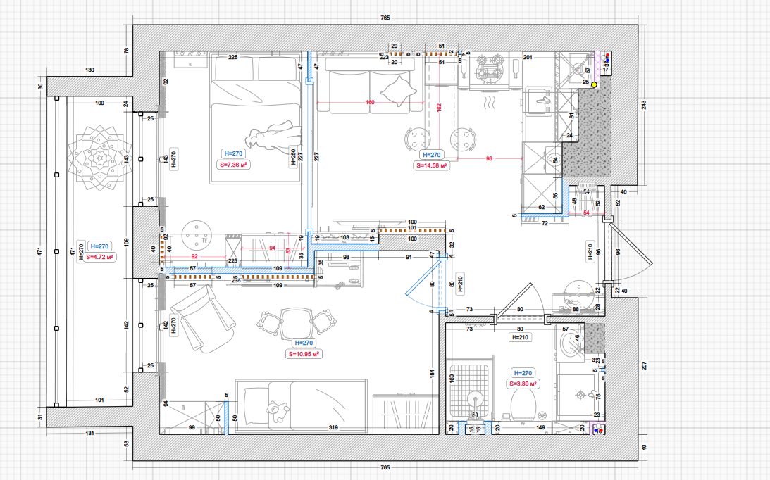 В состав последнего обновления функционала вошло несколько полезных улучшений, которые значительно повысят удобство работы с программой. Хотя изменения кажутся мелкими, они затронули ключевые моменты, которые наверняка оценят пользователи. Рассмотрим их подробнее: Теперь у плитки, ламината, паркета и других раскладочных покрытий можно изменять толщину шва. В контекстном меню появилась возможность задать толщину или установить значение 0, чтобы покрытие в 3D отображалось без шва. Одно из долгожданных обновлений — теперь предметы декора в режиме 3D можно изменять по размерам. При размещении новых предметов или в режиме поворота существующих, помимо привычных зеленых круговых стрелок, появились синие, которые регулируют изменение размеров объекта. Двухстворчатая дверь и проем без двери, установленные поверх стеклянных перегородок, теперь автоматически корректно отображаются в режиме 3D, что упрощает работу с подобными элементами. Теперь в режиме 3D можно изменить тип стекла для стеклянны