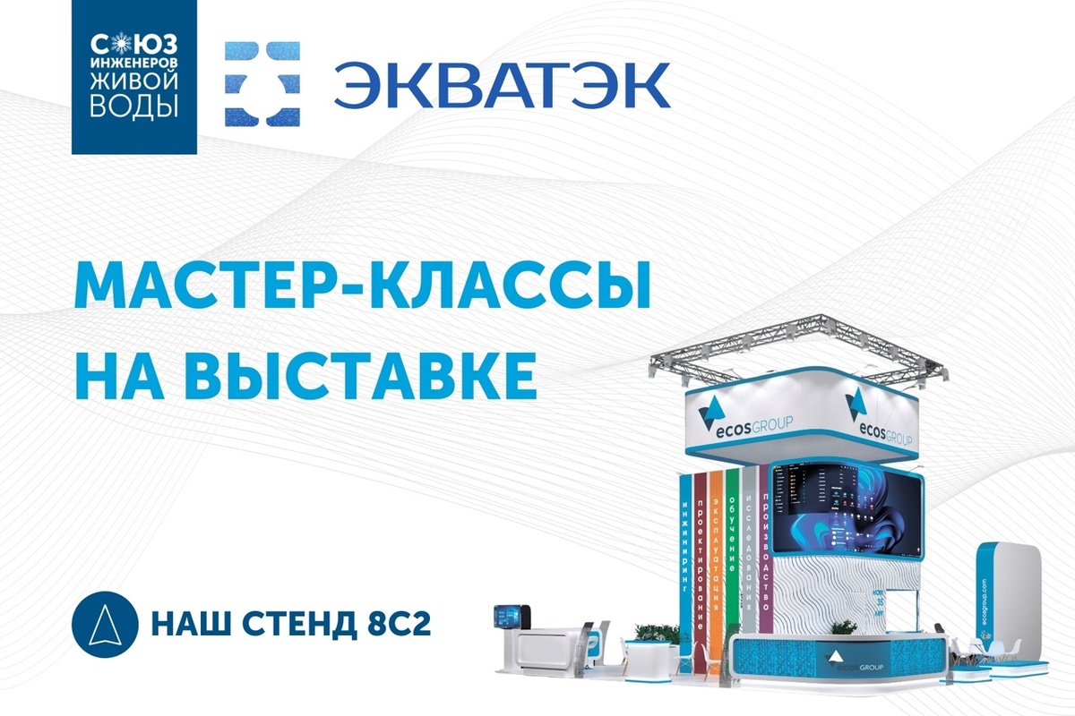 Открытые мастер-классы на стенде ЭКОС Групп Мы уже рассказывали, что на Международной отраслевой выставке ЭкваТэк команда Союза Инженеров Живой Воды будет работать на стенде наших главных спонсоров, ЭКОС Групп, 8C2. А вот про то, что еще будет на стенде — нет. Рассказываем! Помимо замечательной команды ЭКОС Групп, которая подробно ответит на вопросы об инновационных технологиях компании, производстве оборудования и образцах, на стенде будут проходить мастер-классы, открытые для всех участников выставки. Приводим полное расписание, чтобы вы могли спланировать свой день заранее. 9 сентября 11:00 - 11:40 Технология очистки воды в сверхкритических условиях СКВО. 12:45 - 13:30 Способ комплексной деминерализации природных и сточных вод с методом выделения отдельных групп солей (Запатентованная технология). 14:00 - 14:40 Роль лабораторных и пилотных исследований в подборе оптимальной технологии. 15:30 - 16:10 Роль технического задания в митигации рисков для успешной реализации проекта. 1