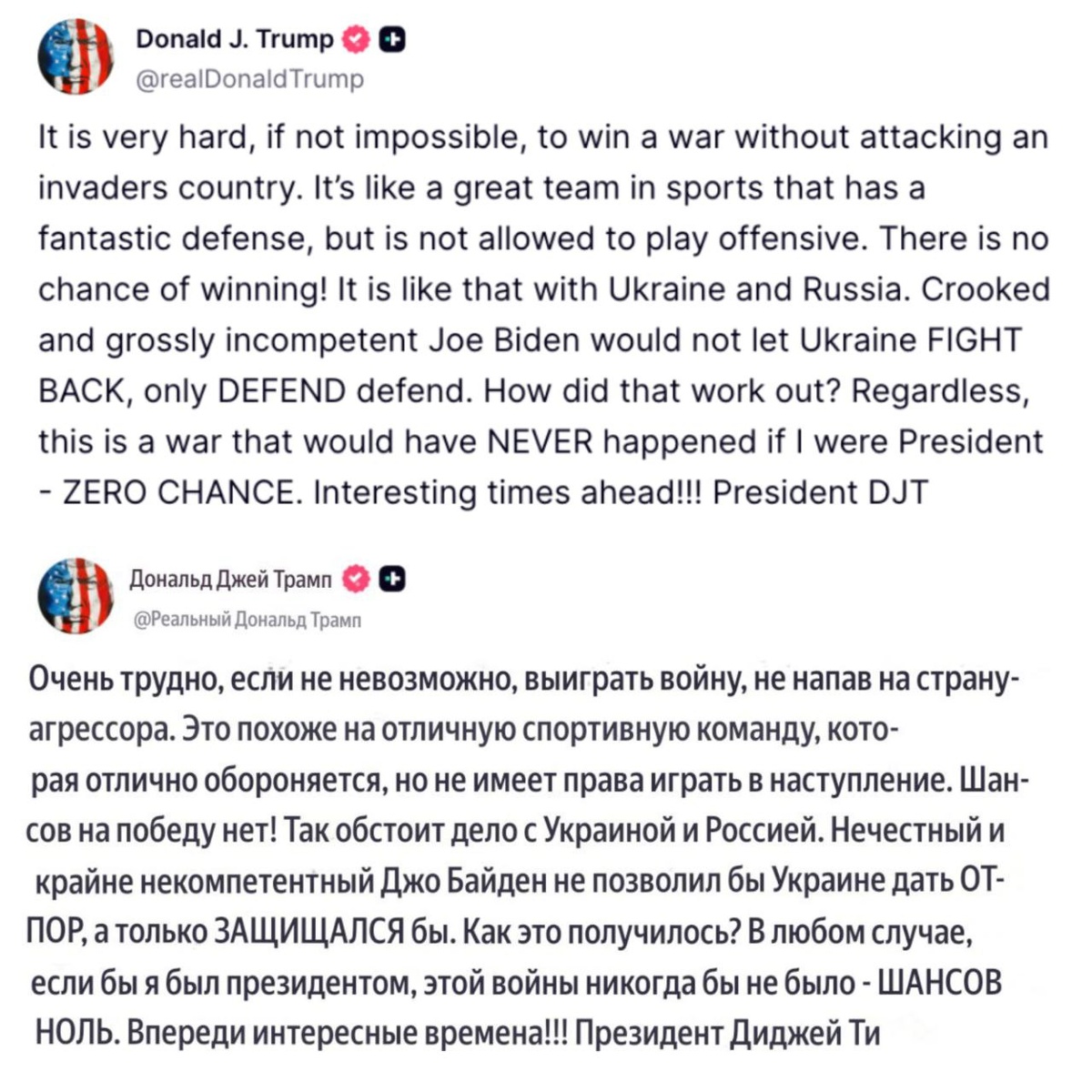 Опять у Трампа пространные рассуждения и обвинения Байдена. Государство США оказывало и оказывает поддержку Украине, Байден что, как частное лицо помогал оружием или боеприпасами? Штатам надо просто отойти в сторону и не отсвечивать. Миротворцы 😏 Подписаться на канал | Наш чат Мы в ВКонтакте
