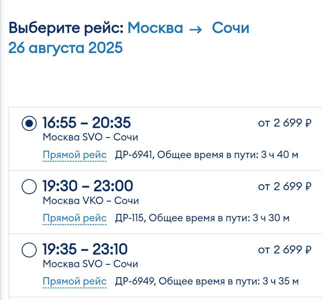 Наши "билетные" находки В продолжение темы про снижение цен на перелеты в Сочи до 75% – заметили приятно дешевые билеты на курорт. Например, слетать в Сочи на борту "Победы" 26 августа можно за 2,7 тыс руб. в одну сторону (цена, разумеется, без багажа, только с ручной кладью). При этом на начало месяца аналогичные билеты стоили от 13,5 тыс. руб. ➡️Делитесь с нами и нашими подписчиками и вашими интересными "билетными" находками. #БилетныеНаходки @atorus