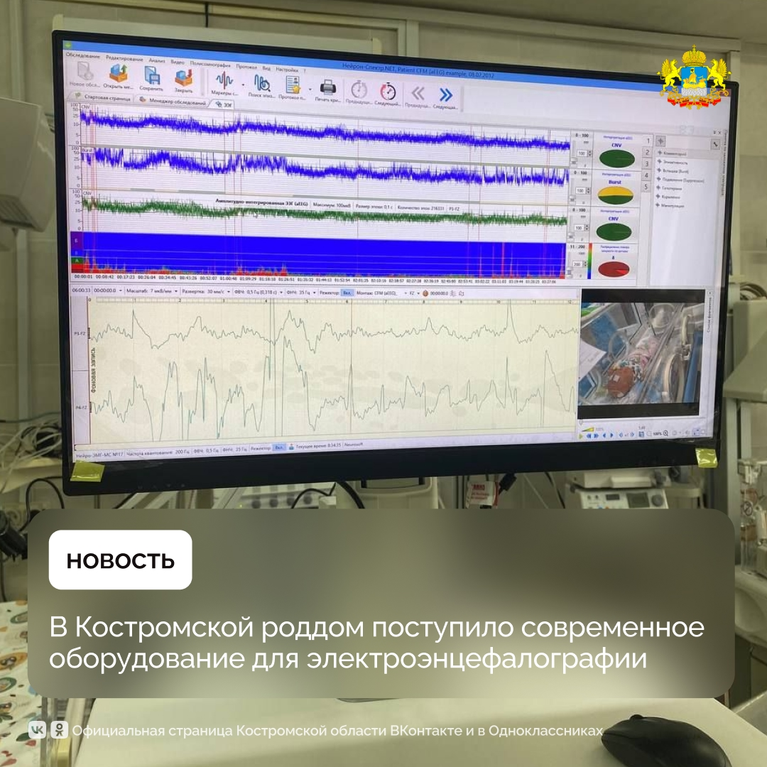 В палате интенсивной терапии для малышей установили нейромонитор. Диагностическое оборудование используется для детей с тяжёлыми состояниями: при асфиксии, судорогах и других неврологических рисках. Особенность устройства — возможность наблюдения в реальном времени: врачи могут следить за состоянием ребёнка не только по данным прибора, но и через встроенную камеру. Аппарат непрерывно отслеживает электрическую активность мозга малыша, что позволяет быстрее выявлять нарушения и начинать лечение. Также в медучреждение поступили новое оборудование для кардиотокографии, с помощью которого оценивают стояние плода во время беременности и в родах. Медицинская техника закуплена в рамках федеральной программы переоснащения перинатальных центров. Общая стоимость — около 7 миллионов рублей. До конца года роддом также получит аппараты ИВЛ и реанимационные системы для новорождённых. #КостромскаяОбласть #Здравоохранение