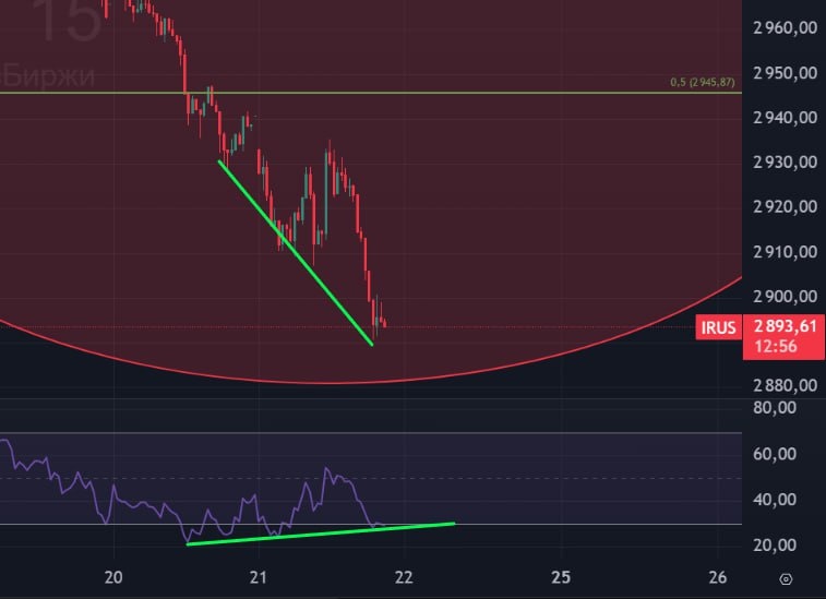 В ответ на пост 🏦 Индекс Мосбиржи: обновление! 🟢 Ну что, всё пропало? Конвергенция все еще жива, которую присылал пару часов назад. Жду когда все нервные продавцы закончатся. 🚗 По индексу есть поддержка 2900 пунктов! #индекс #рубль #индексмосбиржи #ММВБ #IRUS #MXI #MIX #IMOEXF #bogdanoffinvest