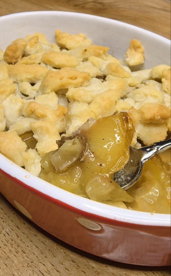 Тот самый вечер, когда даже сливы знали — им уготована великая судьба. Захожу в овощной магазинчик — пахнет зеленью и тишиной. На полке, словно семь добрых фей, лежат сливы-недотроги: белые, с румяным бочком, томные и явно недооцененные. Рядом — груши в сетках, яблоки коробками, а они… гордые одиночки. Семь штук. Мое счастливое число. Число дней недели, грехов, чудес и теперь — слив. Не устояла. Принесла их домой, а они будто шептали: «Сделай из нас нечто… с кардамоном». И я сделала. Крамбл. Тот самый, где хрустящая крошка встречает нежную плоть слив, а душа — покой. Сливовый крамбл с намёком на магию Ингредиенты (на 2 порции, но вы попросите больше): ✔ 7 слив (белых, жёлтых или синих — не важно, главное, чтобы с характером) ✔ 1 ст. л. мёда (или коричневого сахара) ✔ Щепотка кардамона (он раскрывает душу слив) ✔ 50 г сливочного масла (холодного, чтобы крошка получилась дерзкой) ✔ 200 г песочного теста (рецепт как в лимонном тарте, только ½ порции) ✔ 1 ст. л. орехов (грецкие или миндаль