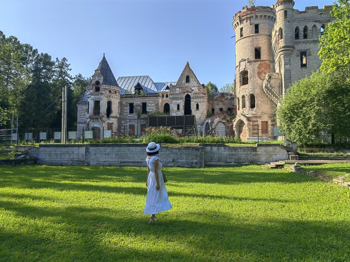 Сегодня усадьба Храповицкого стоит в руинах: башни отбиты, крыши провалились. Но даже в таком виде она невероятно красива. Я гуляла вдоль каскада прудов, смотрела на готический домик лодочника, заходила в храм. Все это похоже на отколовшийся фрагмент другой, параллельной реальности — красивой, романтичной, величественной. Советую к посещению обязательно!