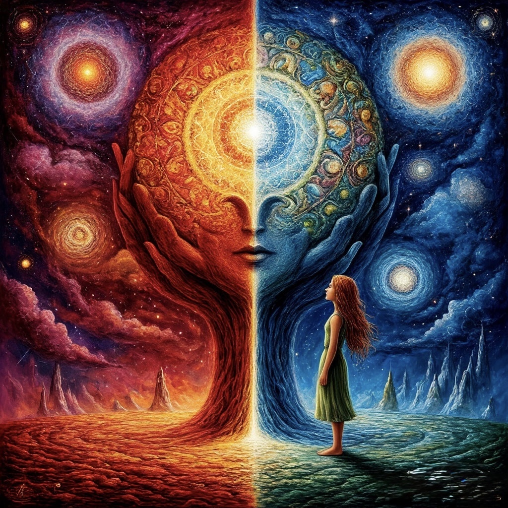 Эго же всегда действует из разделенности, защищая и укрепляя границы личности. Эго – это комплекс психических структур (убеждений, паттернов, травм, страхов, желаний), формирующих наше представление о себе как об отдельной личности. Оно оперирует как на сознательном, так и на бессознательном уровне. Эго может использовать самые возвышенные концепции («долг», «мораль», «совесть», «служение») для продвижения своих скрытых, часто неосознаваемых самим человеком, целей.