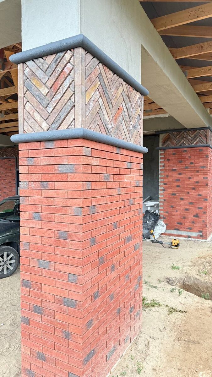Заехал на свой объект, картина вырисовывается. Красная плитка - ABC Германия 🇩🇪, ёлка - Реал Брик Беларусь 🇧🇾, выше будет графитовая штукатурка в цвет элементов #домнапродажу #кирпичручнойформовки #плиткаручнойформовки #облицовочныйкирпич #облицовкафасада #клинкер #клинкернаяплитка #ригельнаяплитка #кирпичныйзавод #кирпич #строительство