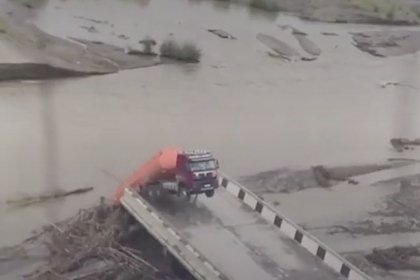 Автомобильный мост с грузовиком снесло потоком воды в российском регионе