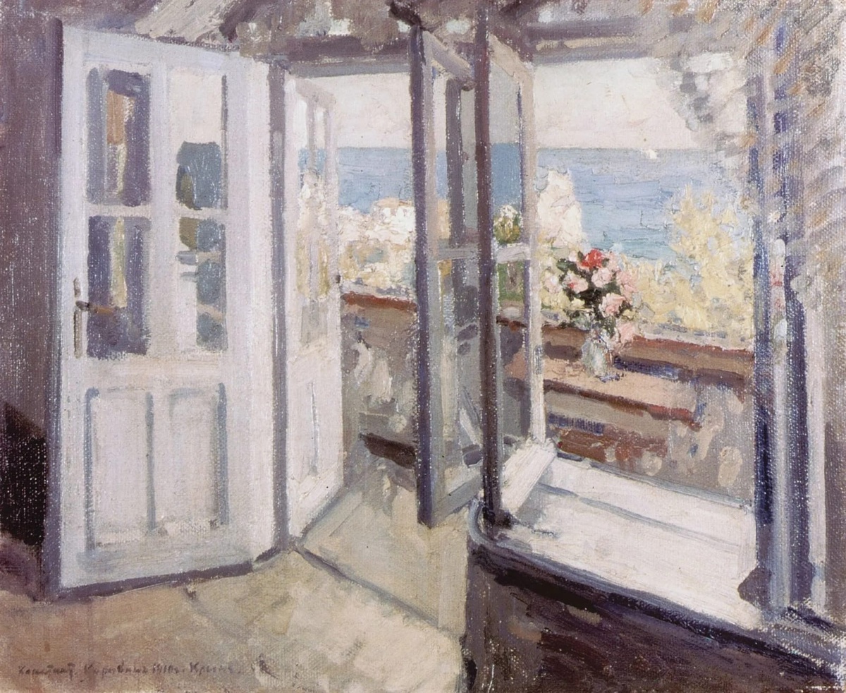 Неожиданно летнее впечатление от зимней картины из-за занавесок с веселыми узорами.