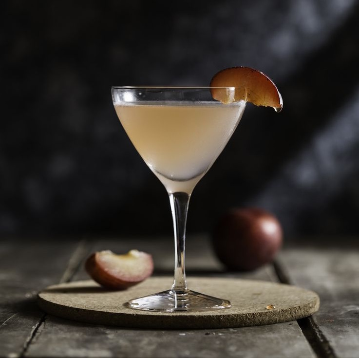 • Сахарный сироп – 5 мл В шейкере со льдом взболтайте все ингредиенты. Перелейте через стрейнер в высокий бокал. Украсьте кружочком лимона или долькой персика и веточкой свежей мяты.