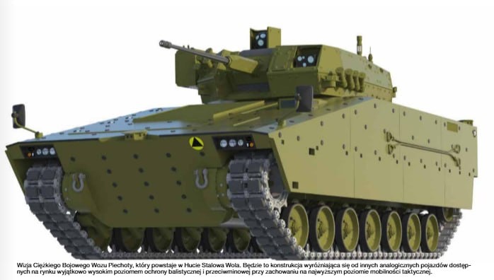 Со 2 по 5 сентября в Польше пройдет оборонная выставка MSPO 2025, где будут показаны образцы ВПК 400 компаний из 34 стран. Здесь же будет показана модель новой тяжелой БМП CBWP Польши. Стало известно, что ее боевая масса будет равняться 42 тоннам, а максимальная 48, что примерно соответствует массе Т-72Б3. При этом отмечается, что она будет иметь защиту, которой нет ни у одной другой БМП. Трансмиссия будет от корейской САУ К9 Thunder, но с еще одним седьмым катком. Напомним, что речь идет не о "Борсуке", а другой машине, которых поляки собираются тоже покупать в количестве нескольких сотен.