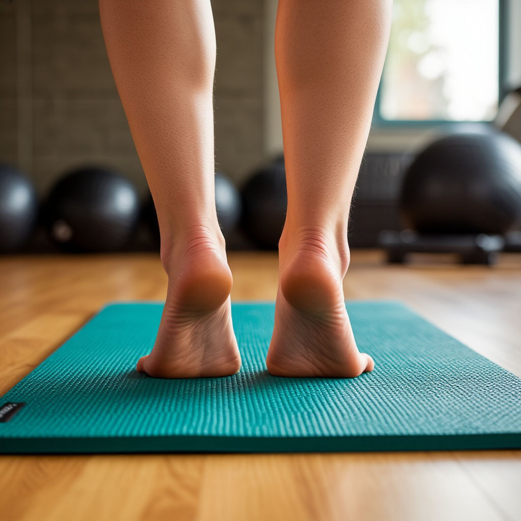 1. Подъём на носки. Поднимитесь на носки, задержитесь на 1 секунду и опуститесь на пятки. Повторите 35 раз. Укрепляет икроножные мышцы и свод стопы.