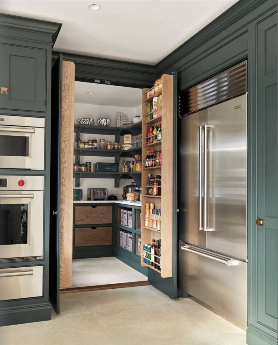 Недавно в разговоре со знакомой я поняла, что не все знают, что такое «чёрная кухня» Поэтому сегодня немного пользы для расширения кругозора и вдохновения 😉 «Чёрная кухня» (или «кухня-невидимка», «грязная кухня», second kitchen) — это полностью функциональная кухня, спрятанная от гостевых зон. Её главная задача — изолировать все негативные аспекты готовки (запахи, шум, жар, беспорядок), сохраняя безупречный вид основной, «парадной» кухни или столовой. Её ключевые функции: 1️⃣ Изоляция запахов и шума: Приготовление рыбы, фритюра, острых блюд. Работа блендера, комбайна, вытяжки на полной мощности. 2️⃣ Хранение хаоса: Здесь живут все нескладные кастрюли, сковородки, запасы круп, моющие средства, мусорное ведро. В «парадной» зоне остаются только эстетичные предметы. 3️⃣Зона для кейтеринга: Если на основной кухне общаются гости, то кейтеринговая команда или домочадцы могут работать незаметно здесь. 4️⃣ Утилитарные процессы: Мытье посуды, разделка продуктов, подготовка ингредиентов. По