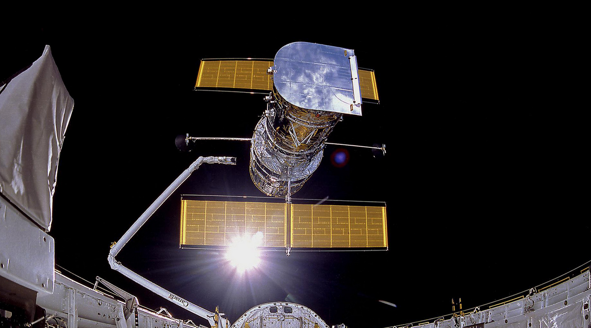 Хаббл был запущен на борту космического шаттла "Дискавери" в 1990 году. Астронавты вывели его на низкую околоземную орбиту, и с тех пор он находится там. Телескоп вращается вокруг Земли на высоте примерно 515 километров. Производить наблюдения на этой высоте не мешает атмосфера Земли, которая размывает изображения, что позволяет получить почти полностью чистый взгляд на космос.