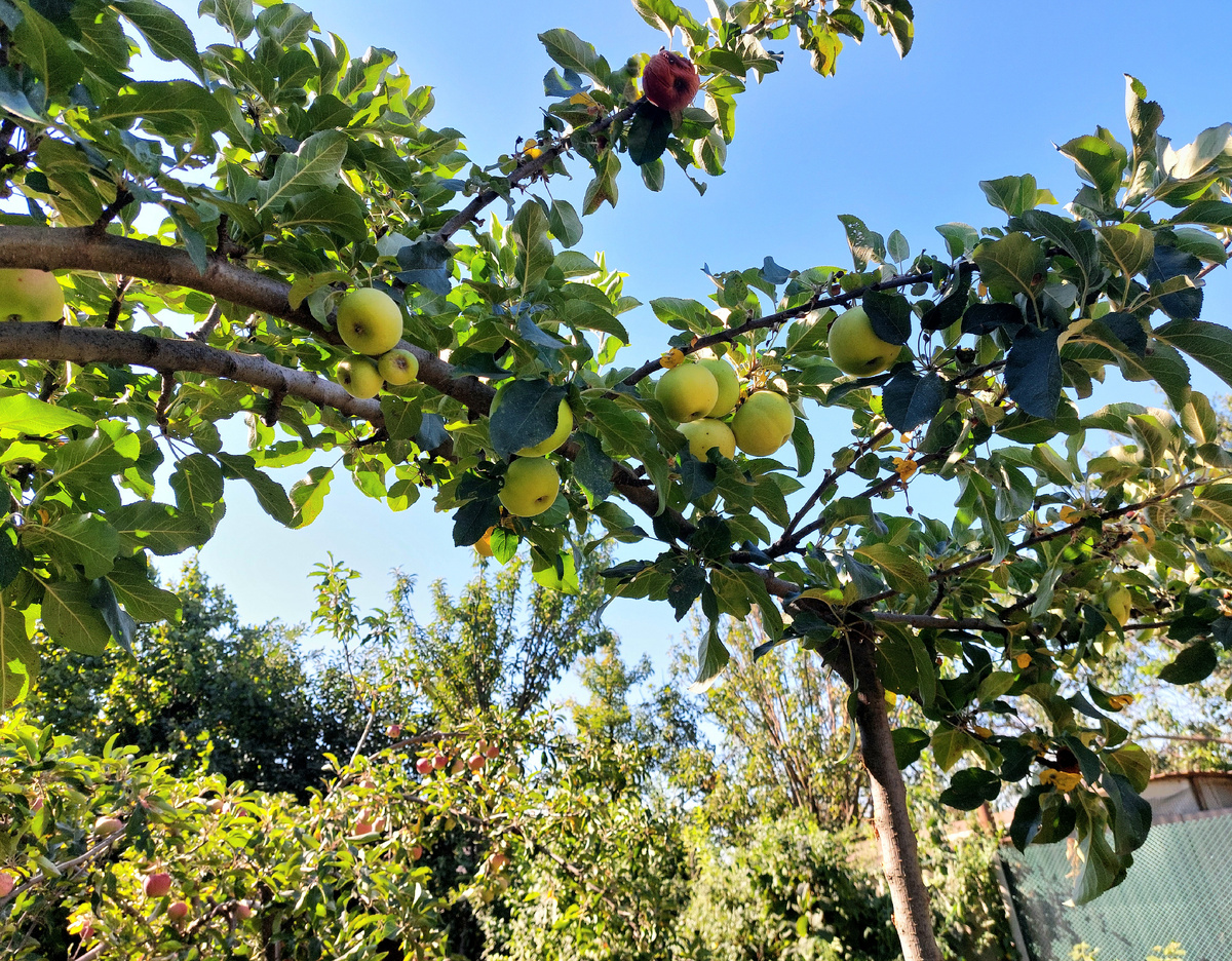 Друзья, если кто знает, подскажите, что за сорт. Яблоки с дерева очень вкусные, но боюсь, что дерево начинает пропадать. Яблоки только на одной ветке. Да так, что подпирать пришлось.
