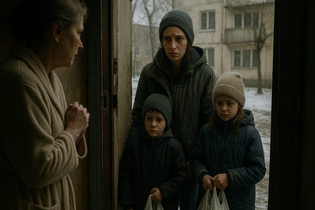 За спиной Марины маячили две маленькие фигурки — пятилетний Максим и трёхлетняя Катя. Дети жались к матери, испуганно глядя на тётю. Максим держал в руках пластиковый пакет с какими-то вещами.